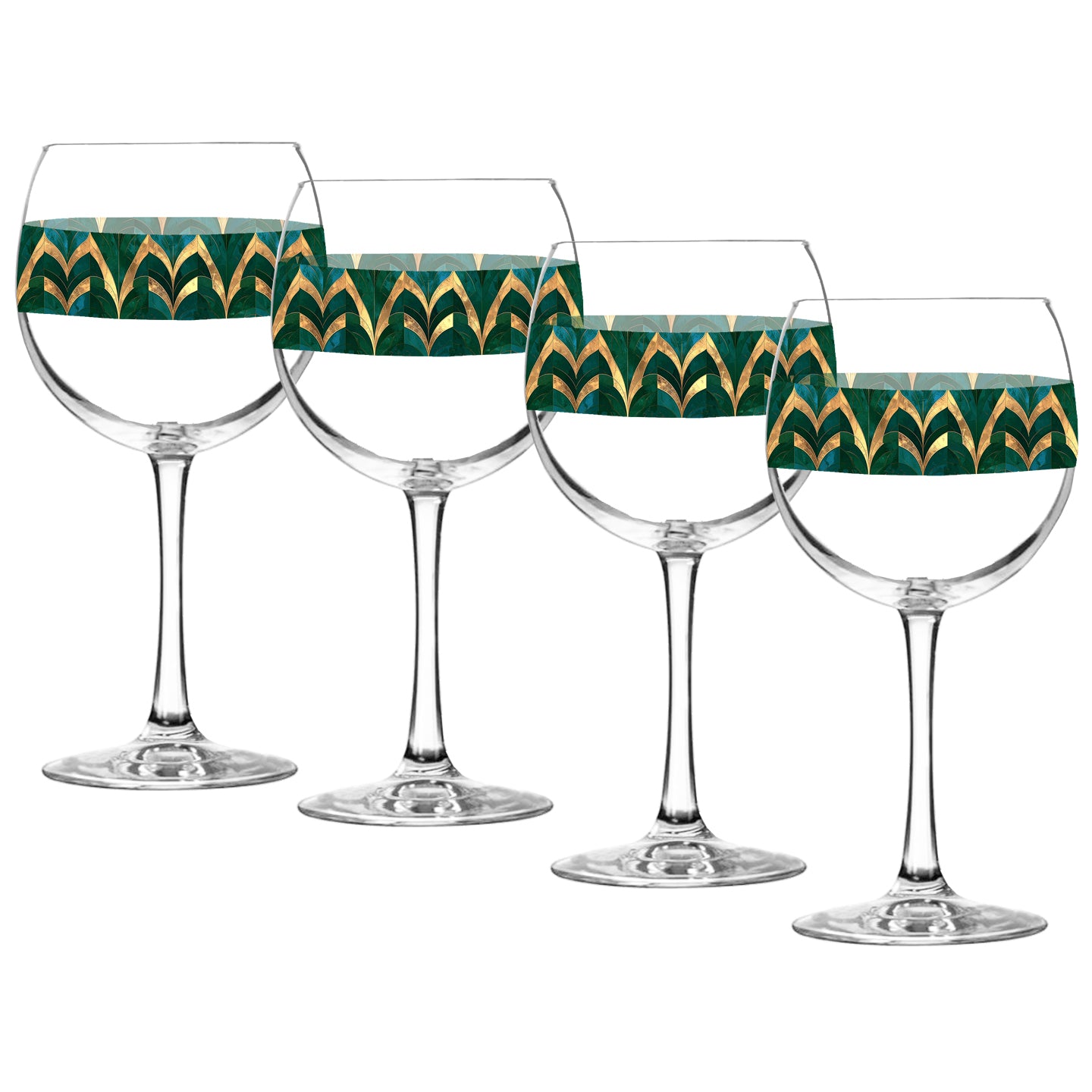 Designed for expressive pours, the balloon wine glass amplifies the dimensional beauty of our Emerald Royale signature design. The wide bowl showcases the full arc of its gold patina arches, glowing richly against jewel-tone emerald. With every turn of the wrist, wine interacts with the pattern in a way that feels regal and indulgent, like drinking from a modern heirloom.