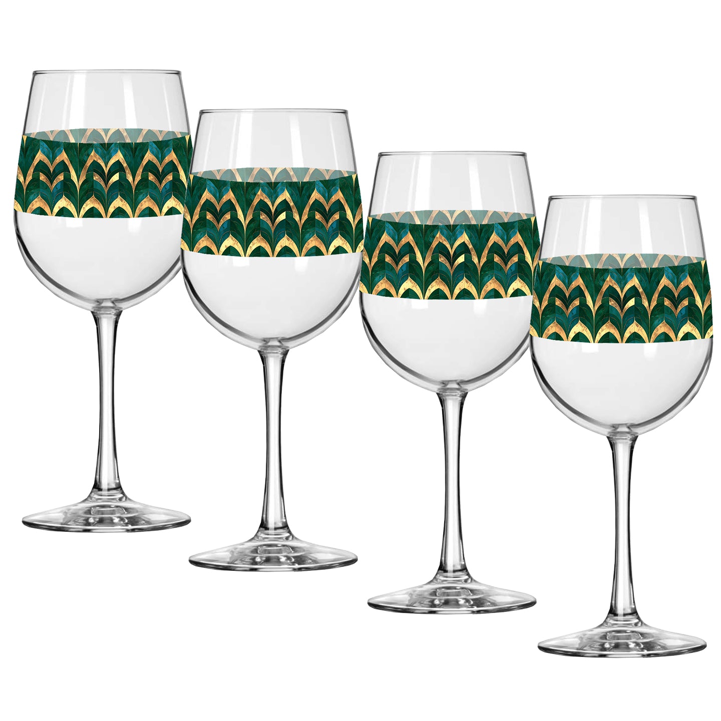 The tall wine glass brings graceful height to our Emerald Royale signature design. The sweeping emerald hues and aged gold arches stretch elegantly along the bowl, creating a luminous architectural effect as wine moves through the glass. Each swirl feels elevated, warm, and artistically refined, perfect for settings that call for sophistication.