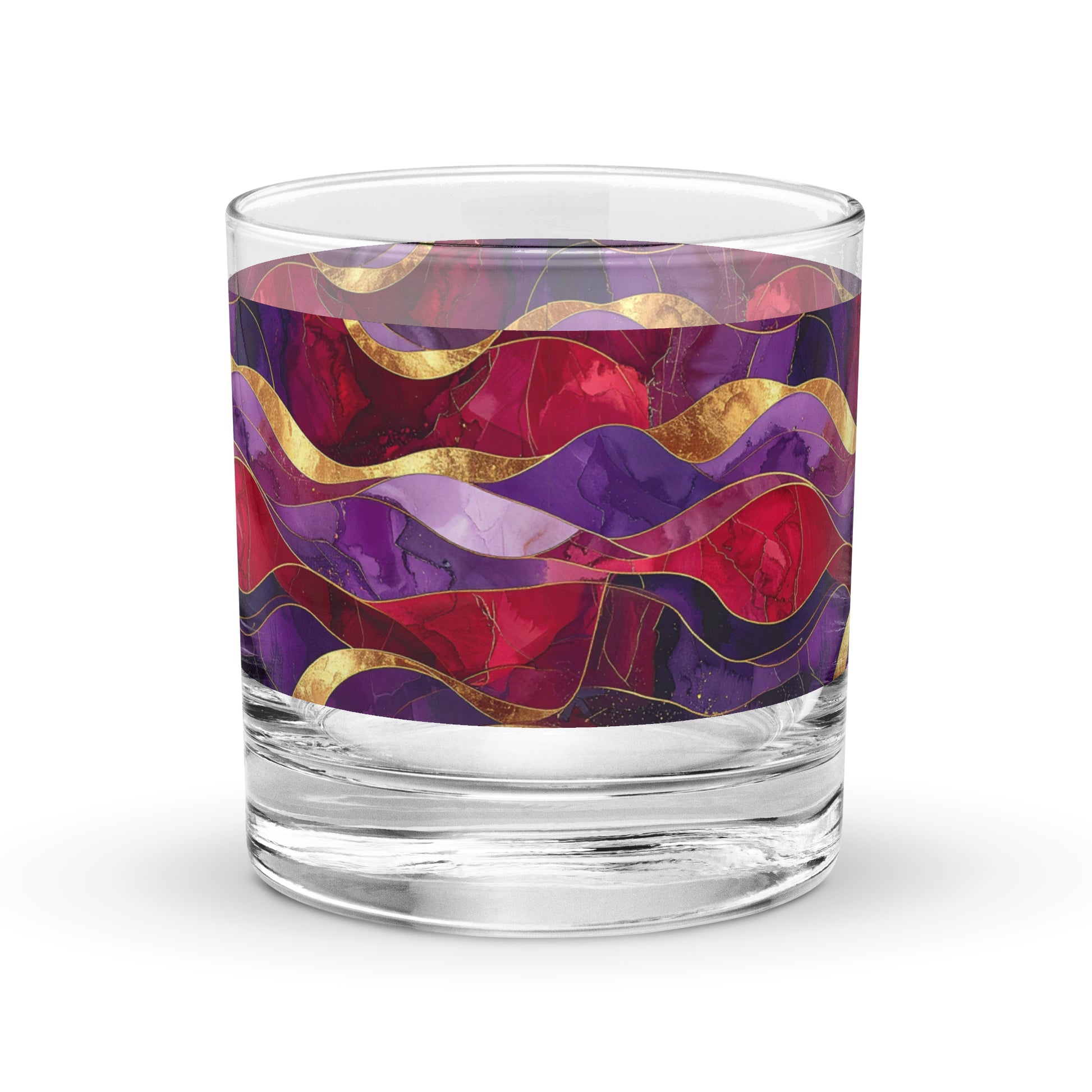 Designed for whiskey, bourbon, and crafted cocktails, the rocks glass has a satisfying weight that complements the richness of our Fluid Marble signature design. The swirling jewel tones wrap dynamically around its bold silhouette, creating a striking contrast against clear spirits and ice. It’s a statement piece; perfect for slow pours, evening unwinds, and expressive home bar moments.